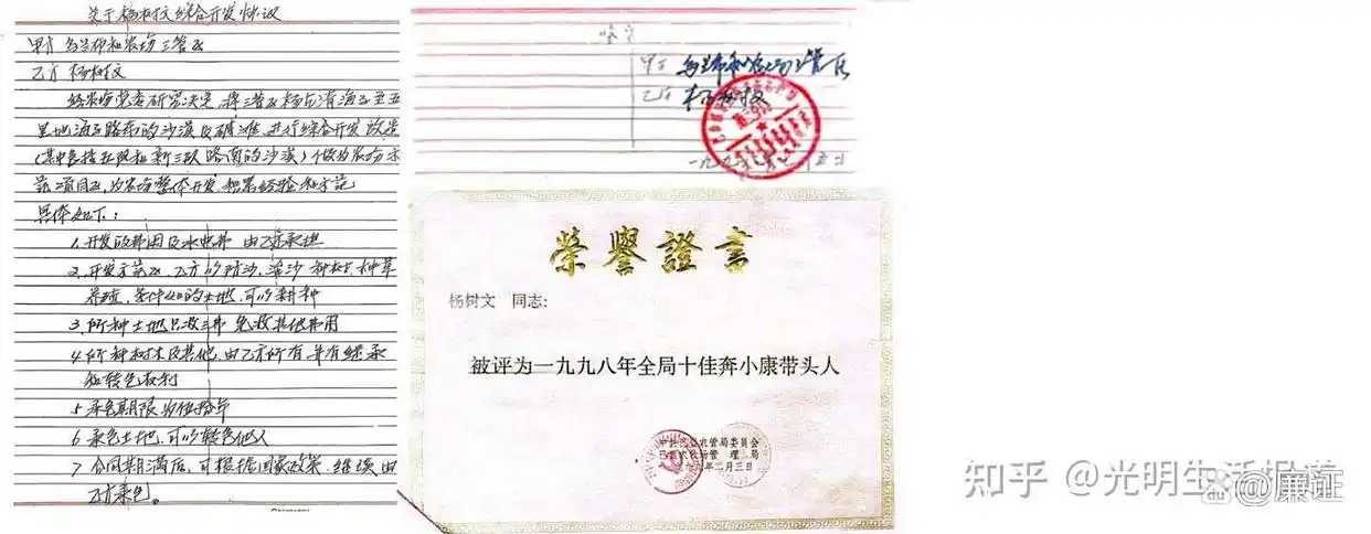 看到杨国华为农场做出的凸起贡献,为激励其多开垦荒地为国度多种粮食,1998年7月5日,乌兰布和农场三管区按照乌兰布和农场党委取杨国华(原名杨树文)签定了一个《地盘分析开辟和谈》,未明白商定地盘承包范畴,无四至。