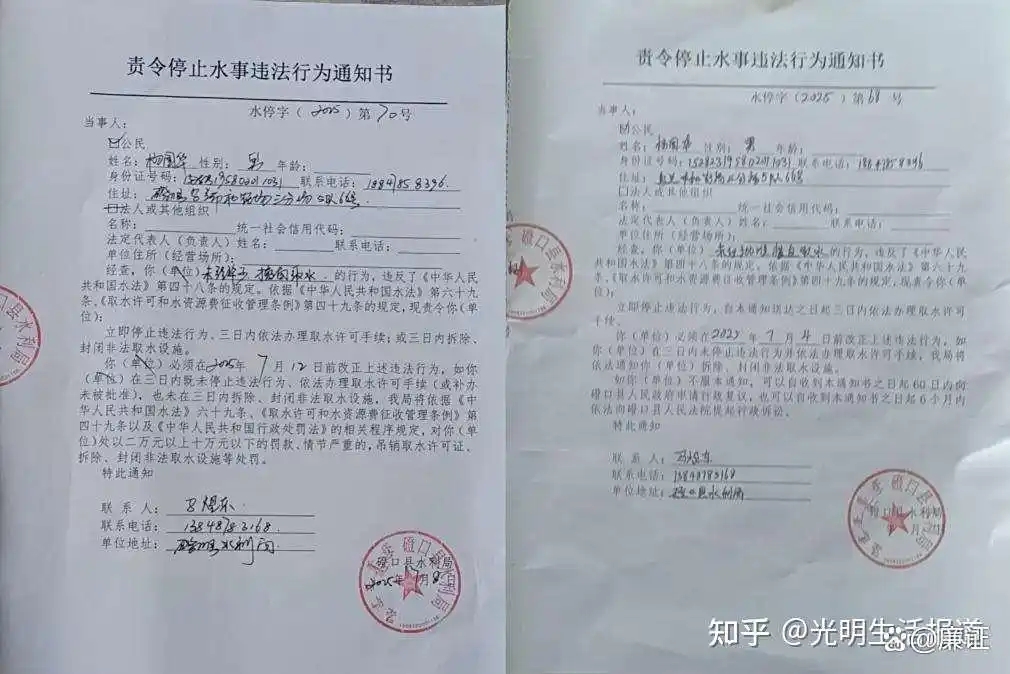 磴口县水利局自2025年4月至7月别离向杨国华做出的水停字(2025)第29、68、70号三份《责令遏制水事违法行为通知书》,后面两份以至没有具体的机井范畴,对此杨国华均委托律师提起行政复议申请,目前上述三案均正在审理过程中。