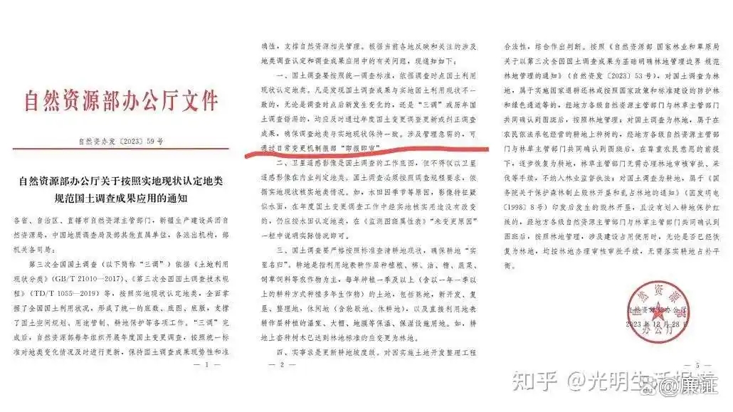 图说:天然资办发【2023】59号文《关于按照实地现状认定地类规范河山查询拜访使用的通知》第一条明白提到凡是发觉河山查询拜访取实地河山操纵现状不分歧的,无论是查询拜访时点后新发生变化的,仍是“三调”或积年河山查询拜访讹夺的,均应及时通过年度河山变动查询拜访更新或改正查询拜访,确保查询拜访地类取实地现状连结分歧。