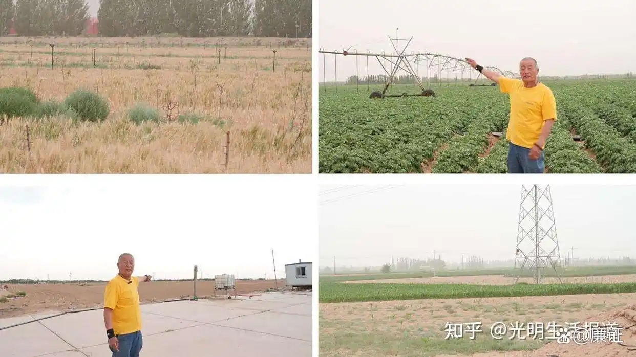 据该村白叟引见,杨国华开垦的地块都是比力偏僻的戈壁或盐碱地,他通过运来土壤取沙,再共同机井滴灌手艺让盐碱下沉,把戈壁或盐碱地变成了亩产小麦或玉米上千斤、土豆上万斤的良田膏壤。农做物对土壤的笼盖,再加上他还通过正在地边和机耕旁种白杨树等速生林,起到了很好的和防沙治沙的感化。
