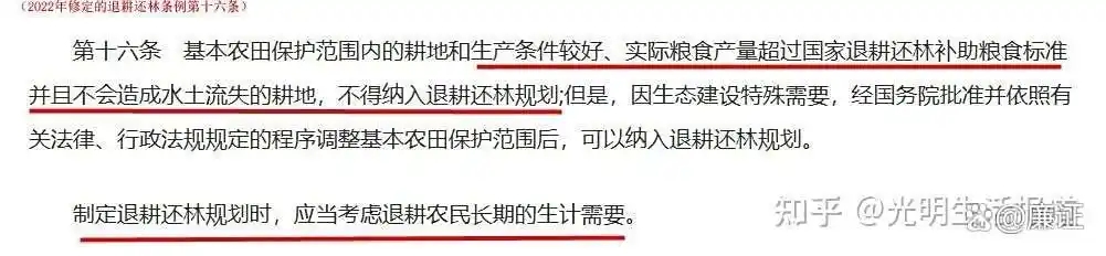 《国务院办公厅关于防止耕地“非粮化”不变粮食出产的看法》(国办发〔2020〕44号)提出,各地域各部分要“充实认识防止耕地非粮化不变粮食出产的主要性紧迫性”“把确保国度粮食平安做为三农工做的首要使命”“实施最严酷的耕地轨制,科学合理操纵耕地资本,防止耕地非粮化,切实提高保障国度粮食平安和主要农产物无效供给程度”“对耕地实行特殊和用处管制,严酷节制耕地转为林地、场地等其他类型农用地”。2016年最新退耕还林条例(修订)第十六条“出产前提较好、现实粮食产量跨越国度退耕还林补帮粮食尺度而且不会形成水土流失的耕地,不得纳入退耕还林规划。”。