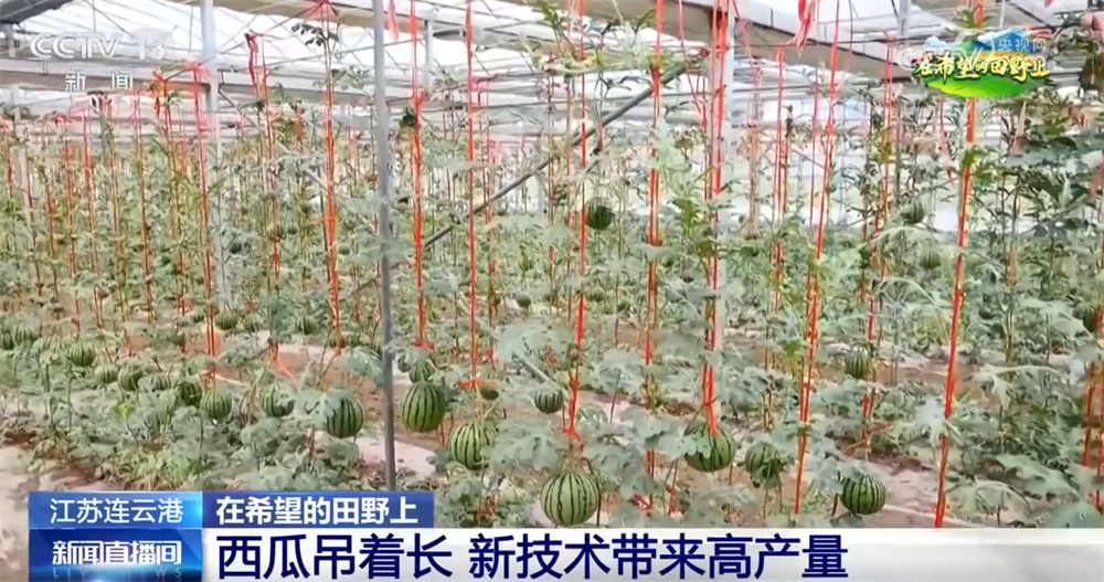 走进连云港市的这个西瓜种植大棚,一个个圆滚滚的西瓜被吊挂起来,这种西瓜种植体例叫做“吊蔓种植”,是把西瓜的接穗嫁接正在南瓜根茎上,操纵南瓜再生根系进行定植。取保守种植比拟,它的密度更大、产量也高,不只节流了种植空间,提高地盘资本的操纵率,还能无效提高西瓜的质量,皮更薄、甜度高、卖相好。