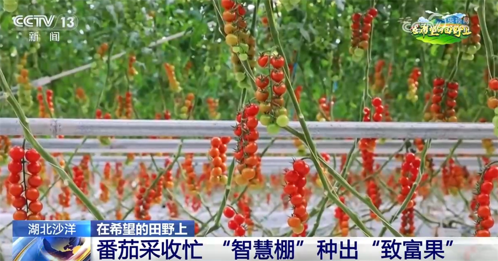 不只是西瓜吊着长,正在湖北荆门市沙洋县沈集镇的一处番茄种植,且一年内能够实现多轮出果。