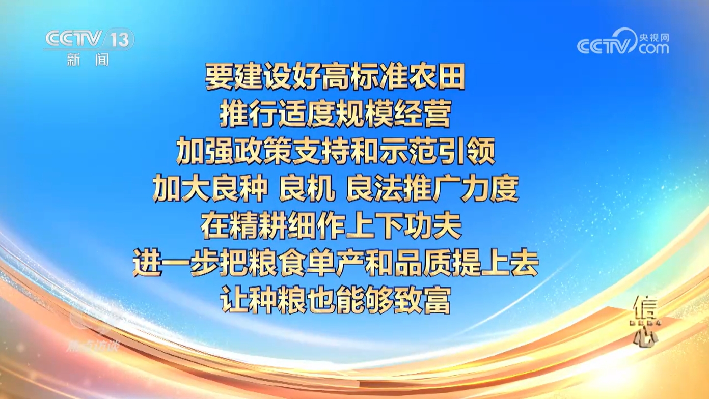 粮食事关国运平易近生,粮食安满是的主要根本。本年3月,习总来到湖南调查,走进本地农田,领会粮食出产环境。他强调:“要扶植好高尺度农田,奉行适度规模运营,加强政策支撑和示范引领,加大良种、良机、良法推广力度,正在精耕细做上下功夫,进一步把粮食单产和质量提上去,让种粮也可以或许致富。”。