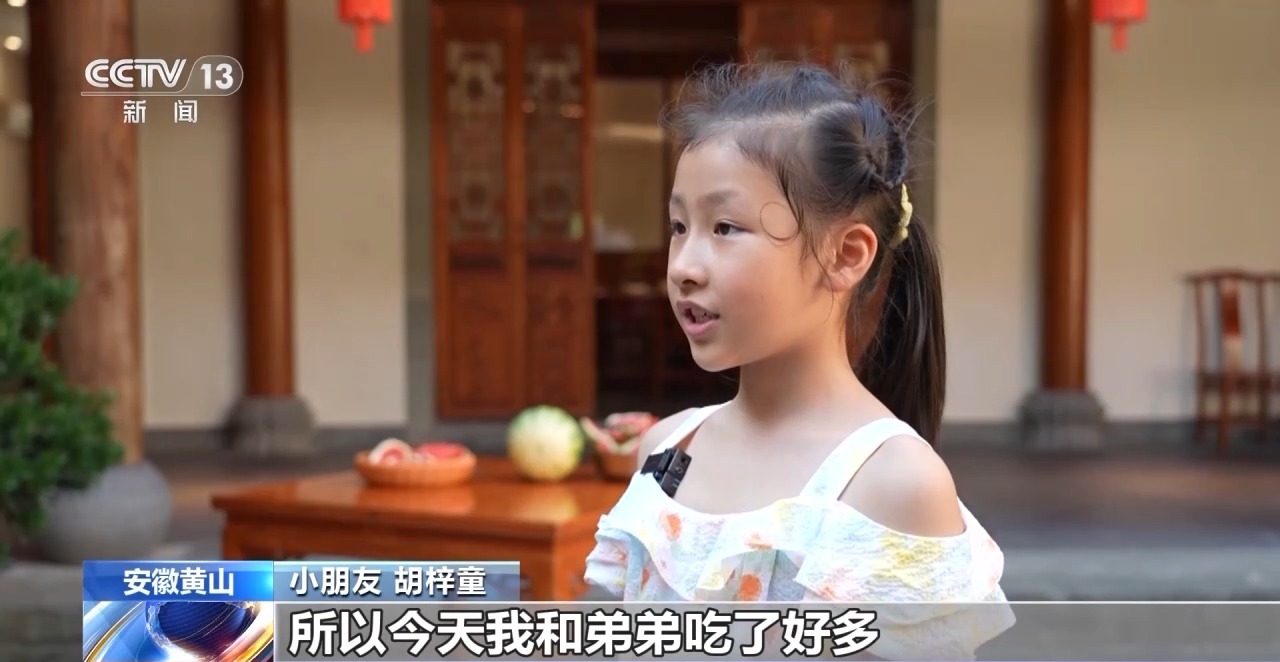 徽州区潜口镇潜口村村平易近 占巍巍:我们的西瓜菜肴好吃又甘旨,并且寄意也很是好,寄意着啃掉炎天的暑气,驱逐秋天的风凉。